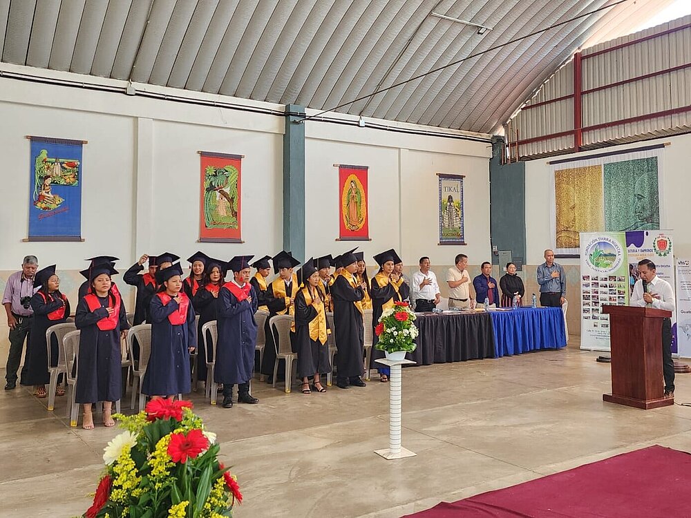 Durante la clausura, el alcalde municipal Pedro Darío de León Escobar reiteró su compromiso con la educación y anunció la donación de un predio para la construcción de un futuro Centro Regional de Formación para Personas Jóvenes y Adultas, proyecto que cuenta con el respaldo del Ministerio de Educación y las organizaciones aliadas. El viceministro de Educación Extraescolar, Dr. Humberto Aldana Mendoza, envió un mensaje virtual animando a los graduados a continuar sus estudios.