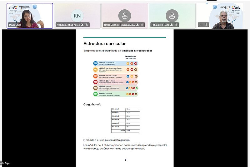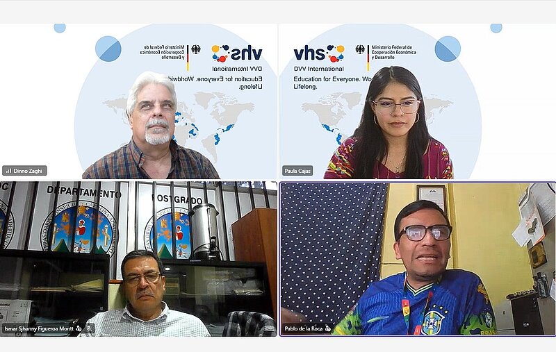 En un esfuerzo por fortalecer la Educación de Personas Jóvenes y Adultas (EPJA) en Guatemala, representantes de DVV International y del Centro Universitario de Noroccidente (CUNOROC) de la Universidad de San Carlos sostuvieron una reunión virtual el pasado 13 de marzo. El encuentro sirvió para revisar avances y coordinar acciones conjuntas en materia de formación docente, redes académicas y nuevas iniciativas regionales.