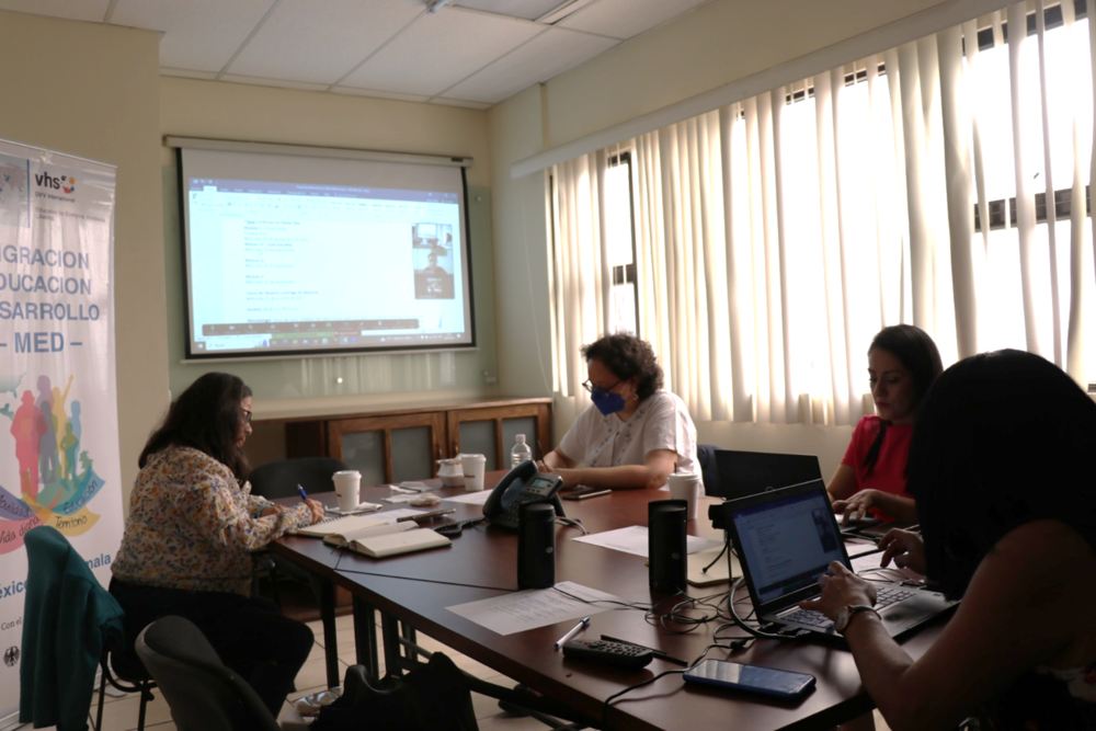 Como parte del apoyo de DVV International Guatemala, hubo una reunión entre FLACSO-Guatemala, Universidad del Valle de Guatemala (UVG), Asociación Pop N´oj , Mesa Nacional para las Migraciones en Guatemala (MENAMIG) y Alianza América, con miras a trabajar en el diseño, planificación e implementación del diplomado: 'Movilidad Humana en Guatemala'.