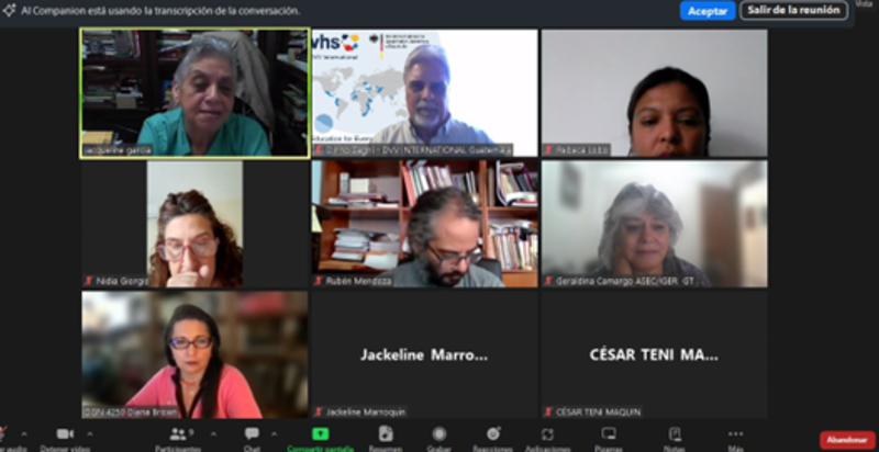 Como parte del trabajo de la mesa técnica No. 1 de la Red de Educación Nacional en apoyo al MINEDUC, se estableció una comisión de trabajo con la participación de DVV International, PRODESSA, ASEC-IGER, el Consorcio de Universidades y la Dirección General de Educación Extraescolar (DIGEEX). Esta comisión se reunió con dos representantes del Consejo Nacional de Educación para discutir la formulación de la política educativa señalada.