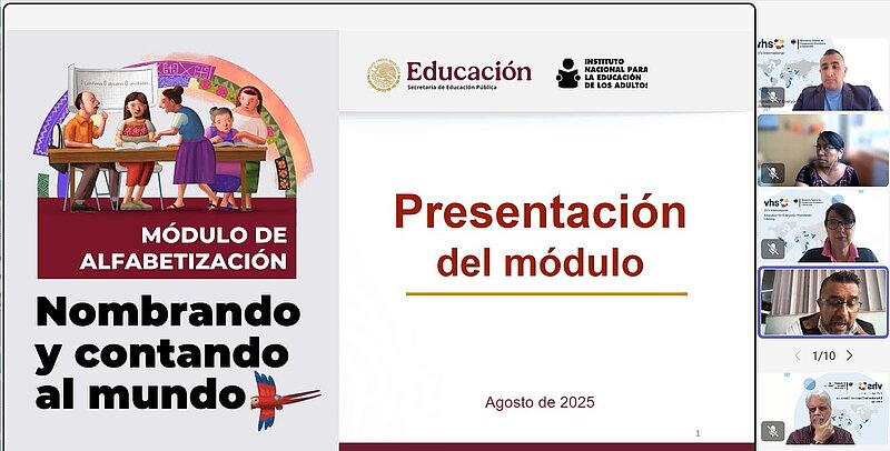 Con el propósito de compartir experiencias y metodologías innovadoras en materia de educación para jóvenes y adultos, se llevó a cabo un intercambio virtual entre el Instituto Nacional para la Educación de los Adultos (INEA) de México y el Comité Nacional de Alfabetización (CONALFA) de Guatemala, con la facilitación y participación de DVV Internacional tanto de México como de Guatemala.