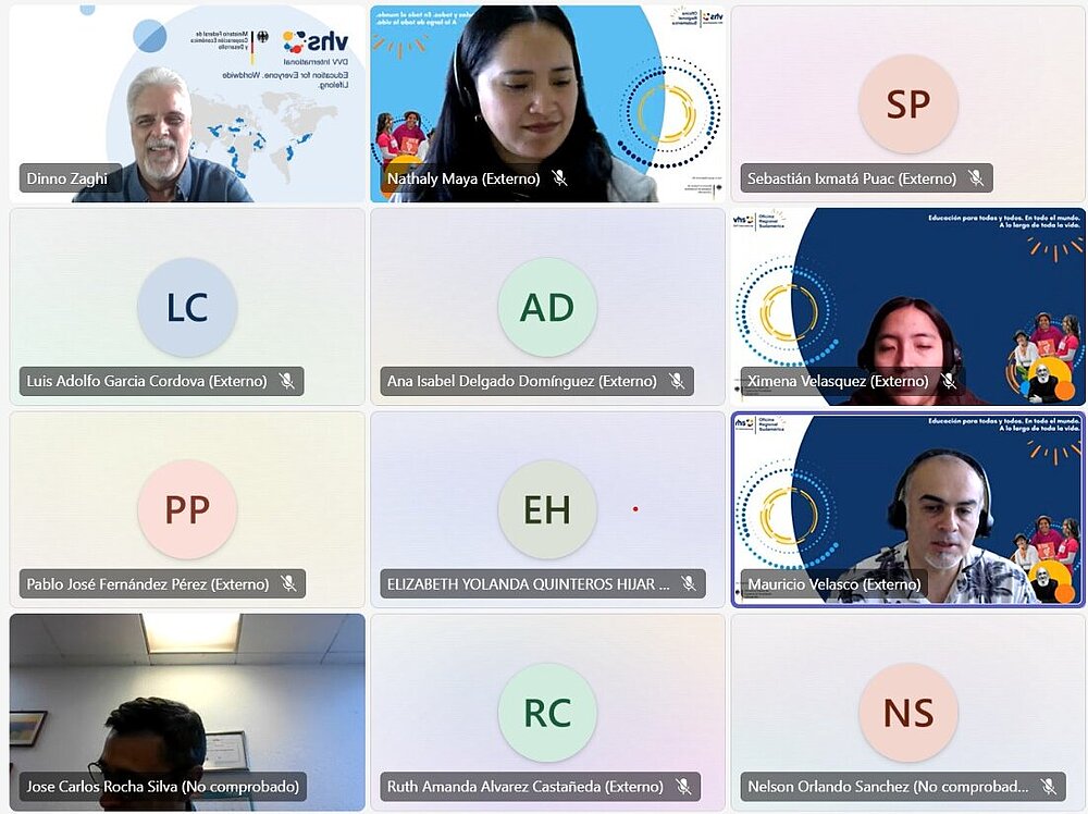 Llevamos a cabo, de manera virtual, la reunión de la Mesa 3 Interministerial, como parte de las acciones impulsadas por DVV International Continental en el marco del trabajo en Educación para Personas Jóvenes y Adultas (EPJA). Este espacio contó con la participación de funcionarios de gobierno y representantes de organizaciones que trabajan temas de EPJA en los países de las regiones Andina y de México, Centroamérica y el Caribe.