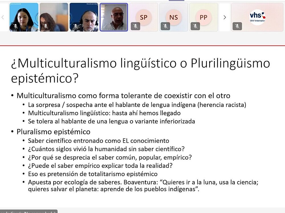 La intervención también enfatizó la necesidad de desarrollar estrategias concretas para que las lenguas no solo estén presentes, sino que efectivamente contribuyan a mejorar la EPJA. Entre estas estrategias se mencionó la importancia de diseñar currículos que valoren y utilicen las lenguas maternas como puente para el aprendizaje, la elaboración de materiales didácticos en diversas lenguas, y la capacitación docente en metodologías interculturales. Asimismo, se destacaron enfoques innovadores como el aprendizaje basado en la oralidad para comunidades con tradición oral, y el uso de tecnologías accesibles como plataformas digitales y medios comunitarios en lenguas originarias.