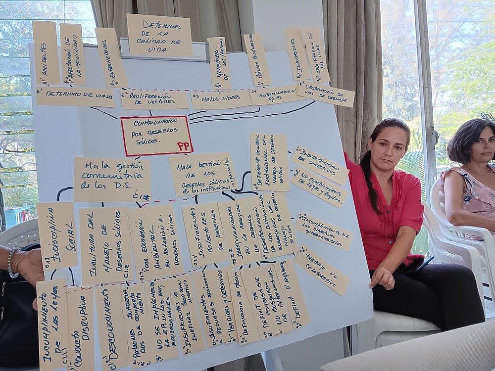Considerando la capacidad integradora de las metodologías propuestas en el plan de estudio, particular destaque en este módulo lo merece la conexión de los mapas verdes realizados por los diferentes equipos con la determinación de problemas y objetivos a partir de las técnicas de árbol de problemas y árbol de objetivos y su tributo a la posible elaboración de proyectos para algunas de las posibles iniciativas de adaptación al cambio climático, que asisten o que pueden emerger en este espacio.