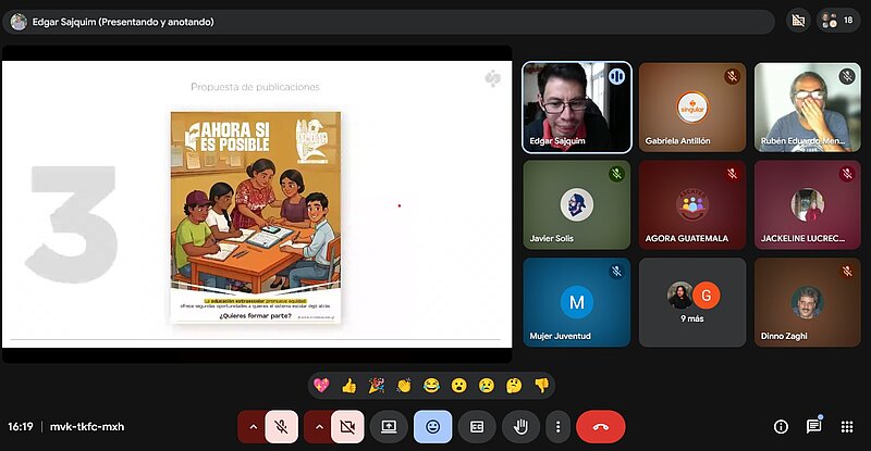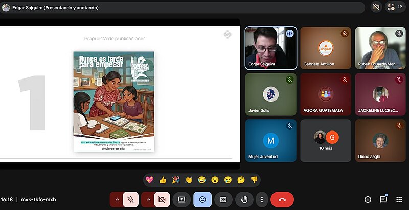 El pasado 24 de abril, la mesa técnica de Educación Extraescolar de la Red Nacional de Educación —integrada por varias organizaciones entre las que se encuentran DVV International y su contraparte PRODESSA— sostuvo una reunión de trabajo para definir estrategias que fortalezcan la educación de jóvenes y adultos (EPJA) en el país. Durante el encuentro se abordaron tres temas centrales, destacando la presentación de una propuesta de campaña de posicionamiento, iniciativa propuesta inicialmente por DVV International.