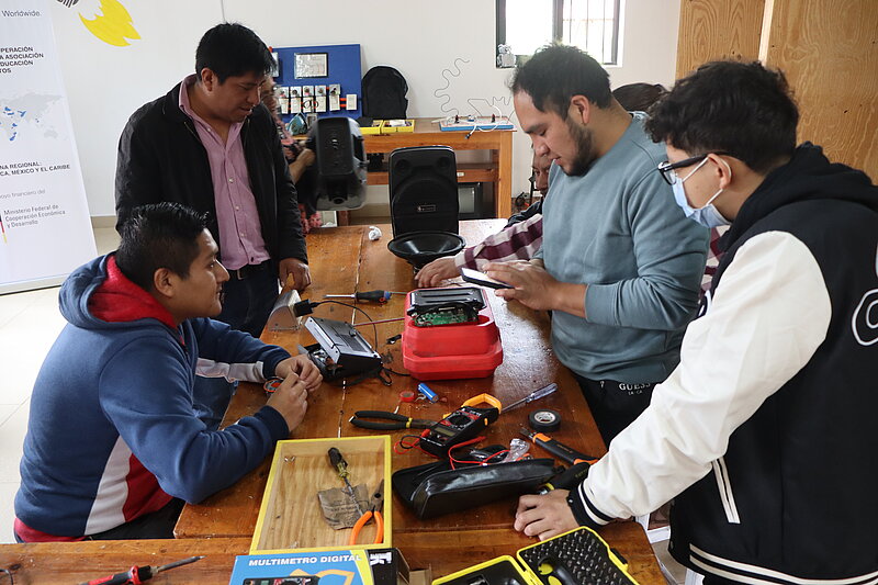 Entre el 14 y el 18 de octubre, se realizó por tercera vez la semana de reparación de electrodomésticos en el Centro de Desarrollo de Capacidades 'La Albarrada'. Con apoyo de DVV International, diez personas participaron de este taller, llevando sus aparatos electrónicos descompuestos para intentar darles una nueva vida.