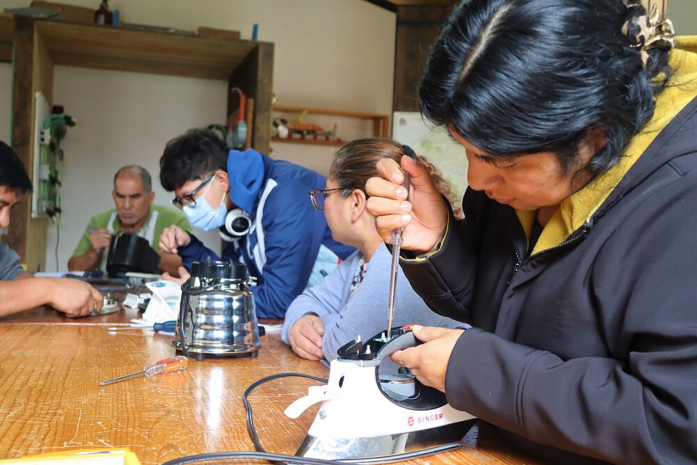 En la introducción, la consultora de la DVV International enmarcó este taller en un movimiento mundial de 'Reparar en vez de tirar' que, en Europa y otras partes del mundo se manifiesta a través de los 'Repair-Café' y exigencias ciudadanas por el derecho a la reparación. Recalcó que en Alemania y Austria ya hay algunas municipalidades que apoyan los esfuerzos de reparación y re-uso, ya que de esta manera se ahorra materia prima, energía y se disminuye la producción de desechos.