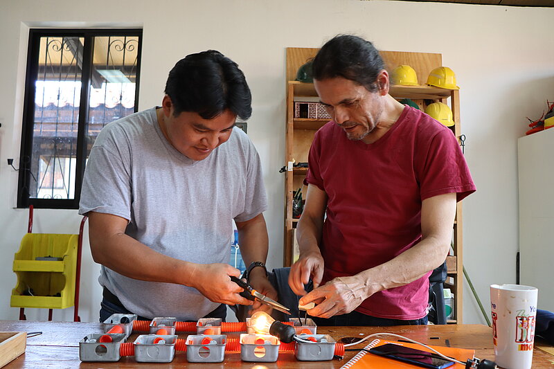 "Lo que aprendemos en el taller de electricidad es muy útil. Aunque son conocimientos básicos podemos aplicarlos en las instalaciones de nuestros talleres y en nuestras casas", menciona un participante de este taller.
