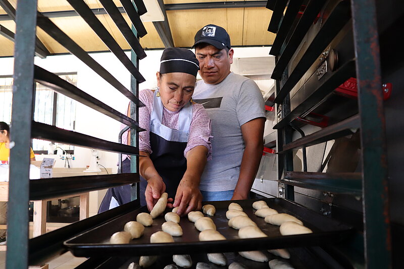 “Aunque ya tengo 20 años trabajando aquí, nunca pude entrar a un taller y tomarlo yo misma”, dice una participante del taller de panadería.