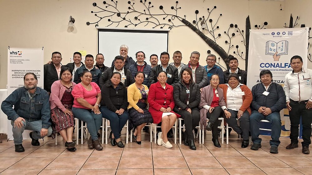 El Coordinador de Proyectos de Guatemala de DVV International también estuvo presente, interviniendo con una reseña sobre la necesidad de este tipo de modelos territoriales, ya que Guatemala reporta un índice de analfabetismo del 16.1% a nivel nacional. Señaló que este enfoque rompe con los esquemas tradicionales de alfabetización, que tienden a ser más generalizados, y permite una respuesta contextualizada y diferenciada según las particularidades de cada territorio.