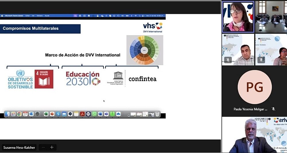 El viceministro y su equipo hicieron referencia a estadísticas educativas, proyecciones de trabajo y procesos prioritarios a desarrollar. Expresaron su agradecimiento por el apoyo pasado de DVV International y manifestaron su interés en mantener una comunicación estrecha y canales de seguimiento.