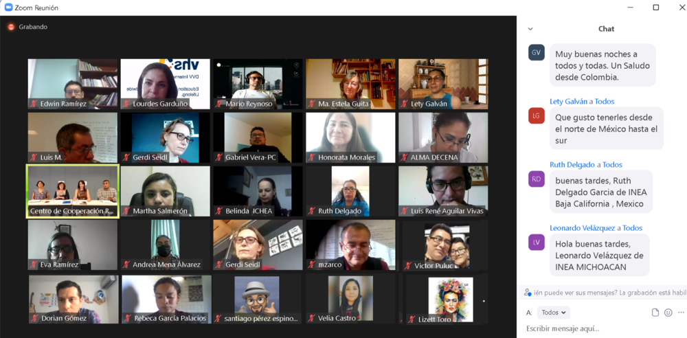 De manera virtual, inauguramos la primera edición del diplomado ‘Recursos digitales para la práctica educativa en EPJA’, un proyecto conjunto entre DVV International y CREFAL que beneficiará a 120 personas en México, Guatemala, Cuba, Chile, Bolivia, Colombia, Ecuador, Perú y Venezuela.