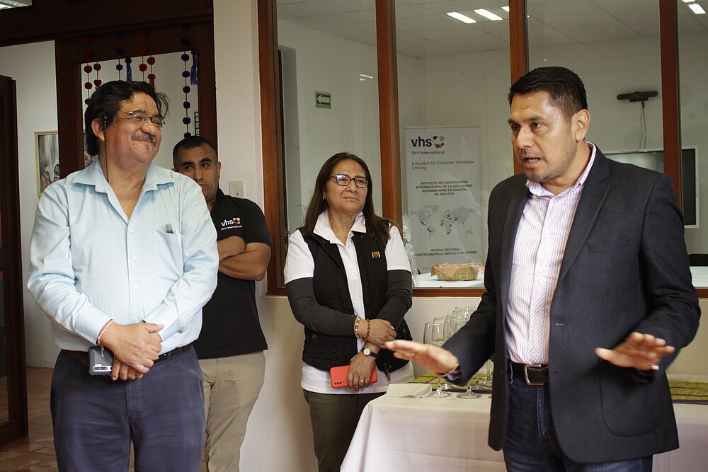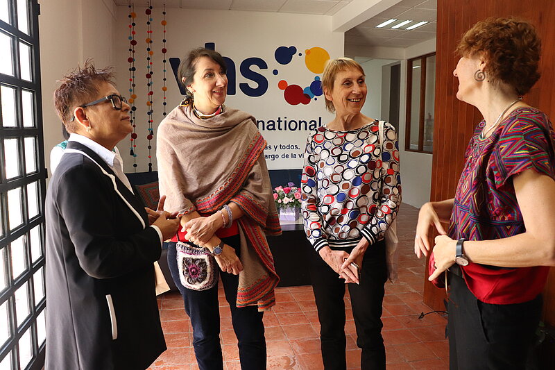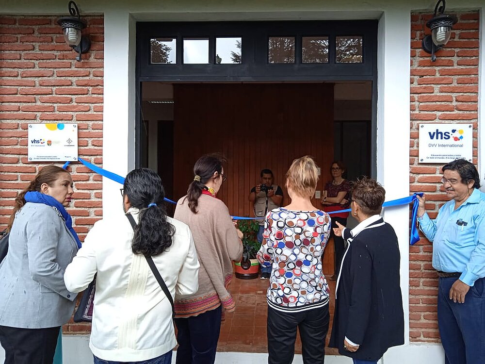 En el marco de esta alianza, el pasado 13 de octubre 2023, inauguramos la sucursal-oficina DVV International dentro del Centro de Desarrollo de Capacidades ‘La Albarrada’, con la presencia de la Sra. Eva Koenig, Senior Desk Officer Latino-/Centroamerica de DVV International en Bonn/Alemania; la Sra. Susanna Hess-Kalcher, Directora de la oficina regional Centroamérica, México y El Caribe; y la Lic. Silvia Solís, coordinadora general y del equipo operativo de ‘La Albarrada’.